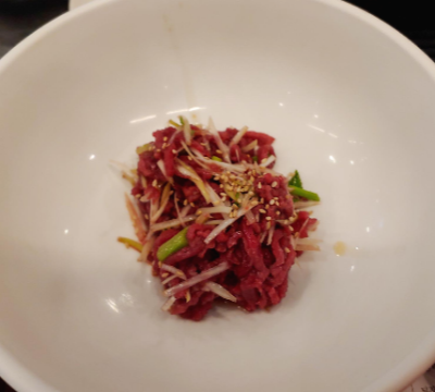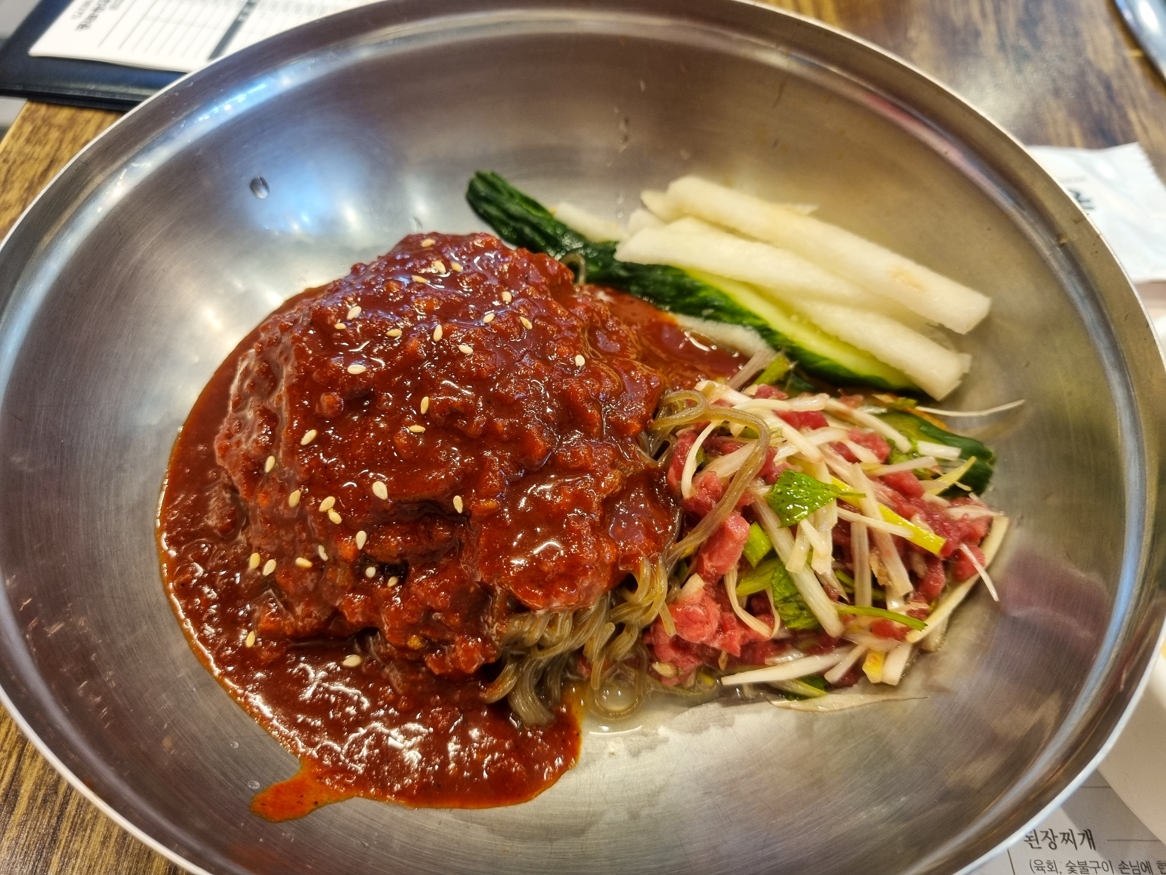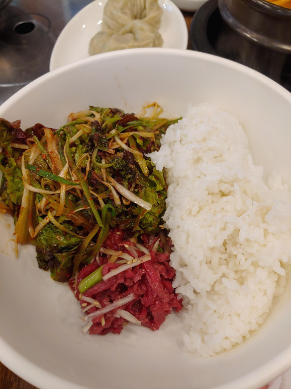 저희는 육회비빔밥, 육회 냉면 그리고 만두를 주문했습니다.